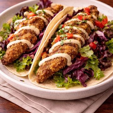 "Sink your teeth into our Catfish Tacos, where flaky catfish is dusted with yellow cornmeal for a Southern crunch. Served with fresh mixed greens and Southern-Style Coleslaw, all brought together by a drizzle of smoky Chipotle Cream Sauce. A delightful fusion of textures and flavors."