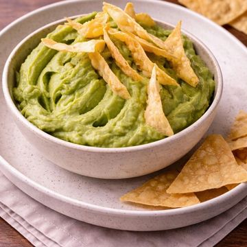 "Dive into creamy Guacamole, elevated by Ancho Chile-dusted tortilla chips. A zesty crunch in every bite!"