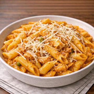 Experience the rustic charm of Italian cuisine with our Pasta alla Buttera. This hearty dish features baked sweet and hot Italian sausage, complemented by the natural sweetness of Roma tomatoes and the fresh pop of green peas. All of this is brought together with a delicate touch of cream, creating a comforting, flavorful medley. A true Italian classic reimagined.