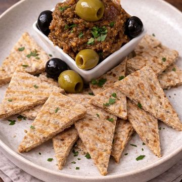"Delight in our Roasted Eggplant Tapenade—smoky, velvety eggplant harmonizes with a medley of herbs and spices. Served with warm, whole-wheat pita bread for a wholesome, yet indulgent, experience."