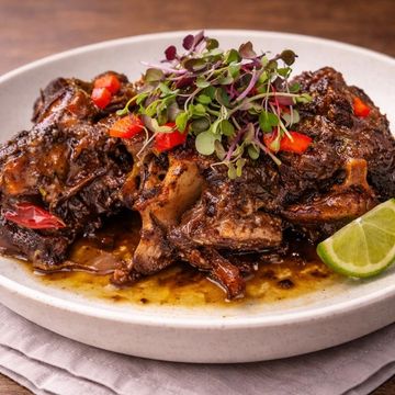 "Spice up your meal with our Caribbean Oxtail Fiesta—slow-cooked oxtail infused with authentic island spices. Create your perfect plate by choosing two of your favorite sides."