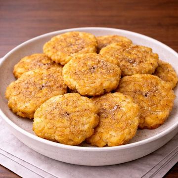 Twice-fried green plantains, crispy and golden with a light crunch and savory finish.