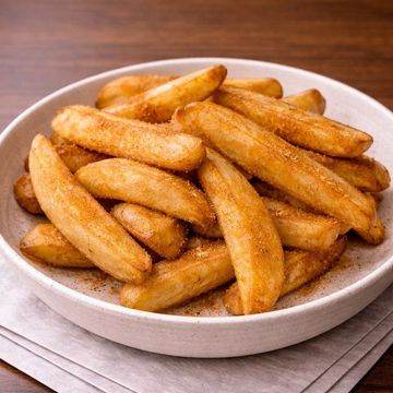 Crispy golden yucca fries with a tender center, lightly seasoned for a rich, savory bite.