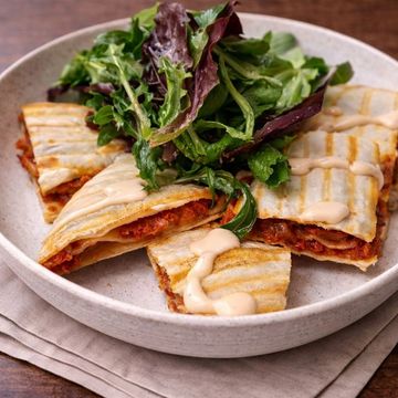 "Spice up your day with our Spanish Chorizo Quesadilla. A fiery fusion of flavor in every fold!"