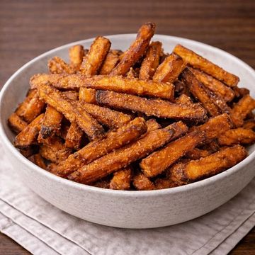 Crispy sweet potato fries with a lightly caramelized finish and a warm, natural sweetness.