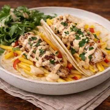 "Delight in our Mahi-Mahi Tacos, featuring tender, flaky fish grilled to perfection. Topped with a tropical Mango Pineapple Salsa and a zesty Sriracha Mayo for a burst of flavor and heat. A seaside feast that's a carnival for your taste buds."